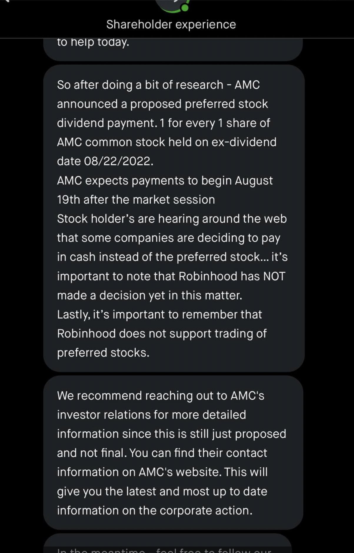On 05-28-2022 increased stock price 10 from 1223 to 1443. Back to AMC Overview. AMC Entertainment shareholders who own AMC stock before this date received AMC.